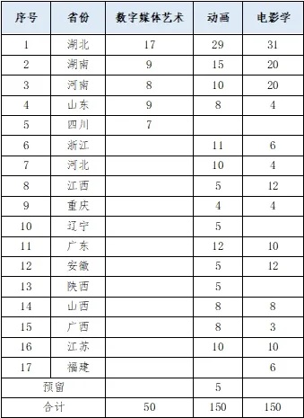 根據(jù)《教育部關于進一步加強和改進普通高等學校藝術類專業(yè)考試招生工作的指導意見》(教學〔2021〕3號)、《教育部辦公廳關于做好2024年普通高等學校部分特殊類型招生工作的通知》(教學廳〔2023〕10號)的有關規(guī)定和教育部關于中外合作辦學項目的相關要求,結合學校實際,學校決定2024年繼續(xù)招收數(shù)字媒體藝術、動畫、電影學專業(yè)考生共350名。