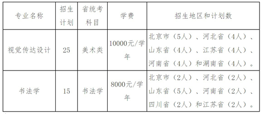2024年,我校藝術(shù)類專業(yè)(含視覺傳達設(shè)計專業(yè)、書法學(xué)專業(yè))繼續(xù)面向全國部分省市招生,參加全國藝術(shù)類提前批次錄取,使用省統(tǒng)考(含書法學(xué)校際聯(lián)考)成績作為專業(yè)測試成績,不再組織校考。