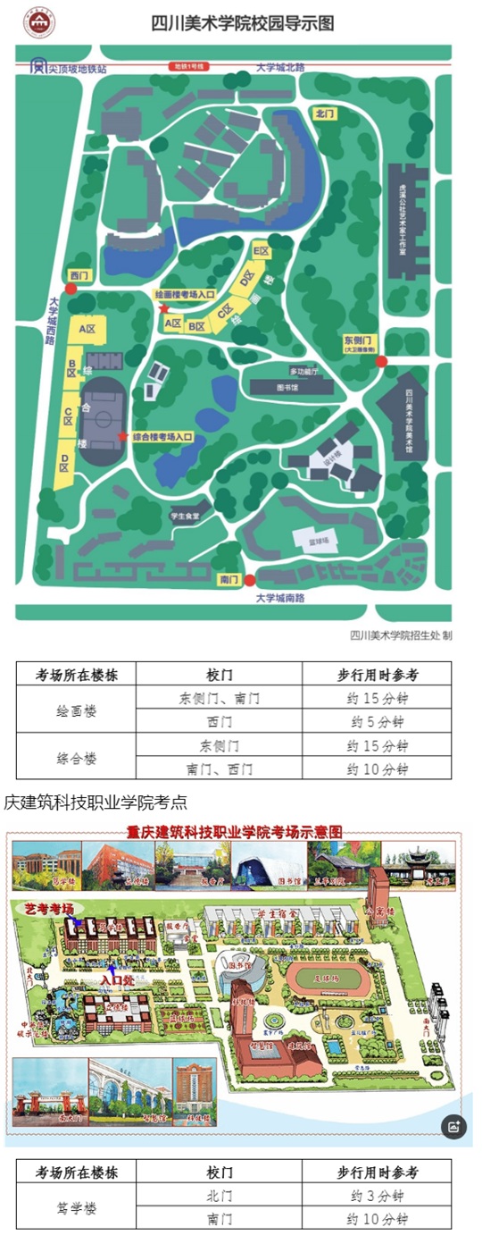 在四川美術(shù)學(xué)院虎溪校區(qū)考點(diǎn)參加考試的考生,可從校園東側(cè)門(mén)、南門(mén)、西門(mén)進(jìn)出考點(diǎn)。