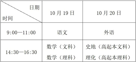 本次考試高起本、高起專統(tǒng)考科目每科考試時間為120分鐘,專升本每科考試時間為150分鐘。具體時間安排如下: