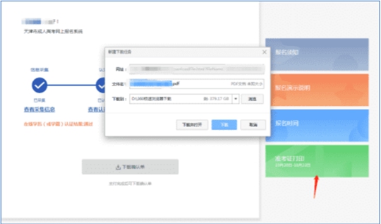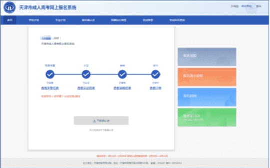 10月10日16:00起,考生可登錄天津市教育招生考試院官方網(wǎng)站“招考資訊網(wǎng)”(www.zhaokao.net)首頁,訪問“公眾服務(wù)大廳”,進(jìn)入天津市成人高校招生考試網(wǎng)上報名系統(tǒng)登錄頁面,輸入身份證號和報名時注冊的密碼、下載準(zhǔn)考證后使用A4白色復(fù)印紙自行打印。