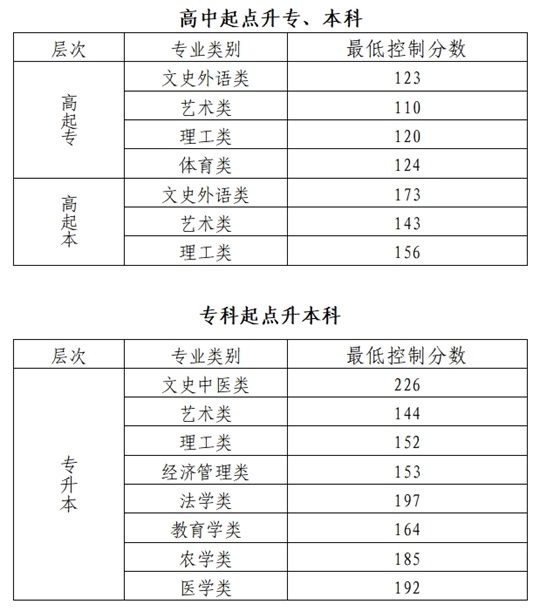 2024年北京市成人高校招生錄取最低控制分數(shù)線