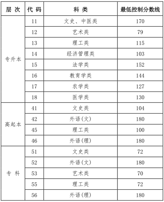 黑龍江省2024年成人高校招生最低錄取控制分?jǐn)?shù)線已經(jīng)劃定,現(xiàn)予以公布:
