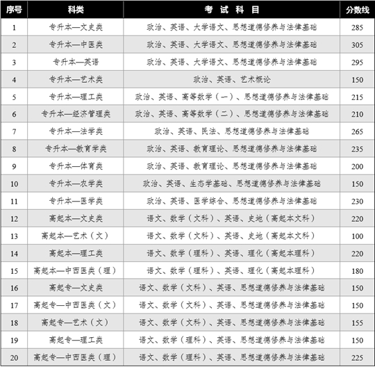 二、2024年云南省成人高校招生最低錄取控制分?jǐn)?shù)線