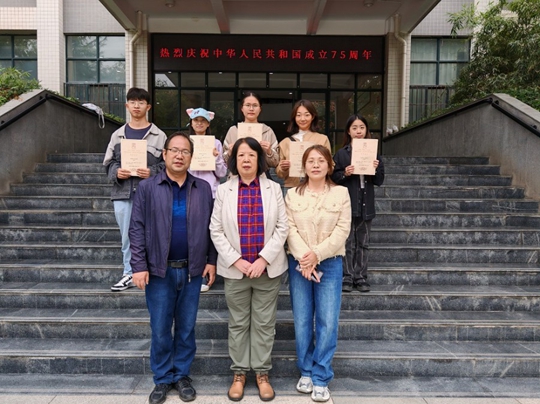 。▓D三)國際教育與人文學院教學院長劉淑穎教授與競賽指導老師及綜合能力賽項金獎獲獎選手合影