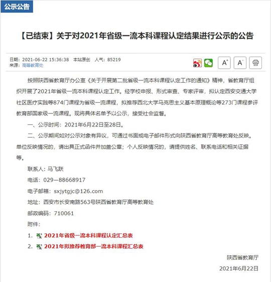 (圖六)2021年《應(yīng)用新聞學(xué)》課程認(rèn)定為陜西省省級(jí)一流本科課程