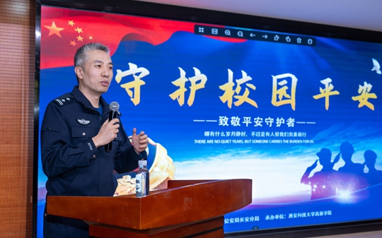 為了切實提升全校師生的校園安全意識,增強自我保護能力,西安科技大學高新學院保衛(wèi)與后勤保障處于11月5日在圖書館報告廳和日新樓廣場聯(lián)合舉辦了一場內(nèi)容豐富、形式多樣的反詐禁毒校園安全教育活動。本次活動特別邀請了西安市公安局長安分局子午派出所、反詐中心、禁毒大隊、巡特警大隊的公安干警代表來到學院,共同開展這場意義深遠的校園安全教育宣傳活動。公安干警們的到來,不僅為活動增添了權(quán)威性,更為師生們提供了與一線警務人員面對面交流的機會。