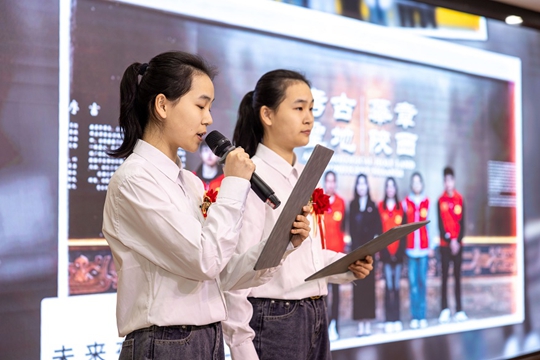 雙胞胎姐妹宮鑫悅、宮鑫怡作為先進(jìn)班集體代表在發(fā)言時(shí)說,在老師們精心的指導(dǎo)下,在全班同學(xué)的共同努力下,班級展現(xiàn)出強(qiáng)大的凝聚力,形成你追我趕的學(xué)習(xí)氛圍,在學(xué)院的各種競賽、比賽中都能看見班級同學(xué)的身影。同時(shí),她們表示將繼續(xù)心往一處想、勁往一處使,擰成一股繩,聚成一團(tuán)火,向著更璀璨的輝煌全力沖刺,以青春之我、奮斗之我,為班級增光添彩,書寫屬于他們自己的不朽華章!