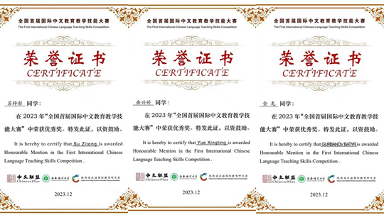 2023年12月2日—3日,為適應(yīng)新文科背景下國際中文教育專業(yè)的發(fā)展要求,積極響應(yīng)國際中文教育領(lǐng)域的新動向,促進國際中文教育的蓬勃發(fā)展,加強人才培養(yǎng)水平,提高學(xué)生在國際中文教育方面的教學(xué)技能,以競賽模式推動教育質(zhì)量的提升,中文聯(lián)盟與海南師范大學(xué)、陜西省漢語國際教育研究會在海南師范大學(xué)共同主辦了“全國首屆國際中文教育教學(xué)技能大賽”,本次大賽共有來自100多所院校的200多名學(xué)生參加,在漢教教研室慕濤老師、杜飛老師和海外中文教育研究中心文安東老師的悉心指導(dǎo)下,西安科技大學(xué)高新學(xué)院漢教21級蘇梓彤、岳興婷以及來自土庫曼斯坦的國際生金龍榮獲了本次大賽的優(yōu)秀獎,慕濤老師、杜飛老師、文安東老師獲得表彰。
