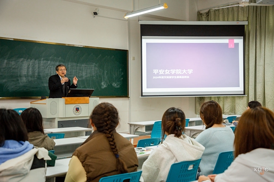 當(dāng)日下午,在主樓群1號樓217教室,京都平安女學(xué)院大學(xué)2024年度“2+2”留學(xué)項目說明會如期舉行。毛利憲一理事長詳細(xì)介紹了京都平安女學(xué)院大學(xué)的學(xué)校歷史、專業(yè)設(shè)置、國際交流等方面的情況,并對即將啟動的2024年秋季入學(xué)“2+2”留學(xué)項目做了深入解讀。在說明會的互動環(huán)節(jié),毛利憲一理事長與在場學(xué)生進(jìn)行了交流,表達(dá)了對嘉庚學(xué)院學(xué)子赴日留學(xué)的熱烈歡迎及期待。
