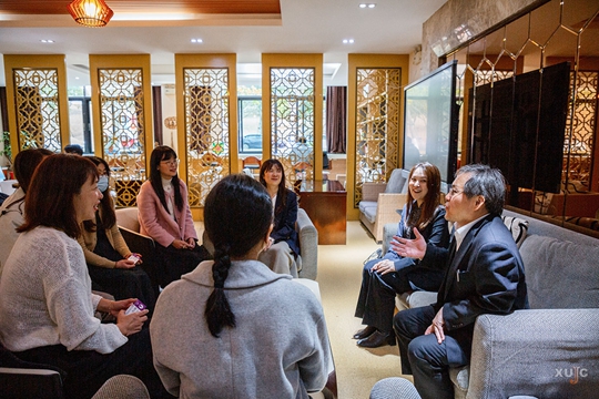 毛利憲一理事長與廈門大學(xué)嘉庚學(xué)院曾赴平安女學(xué)院大學(xué)交流的教師座談