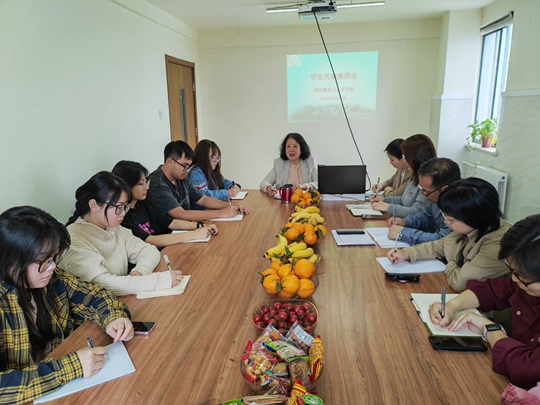 2024年4月10日下午,西安科技大學(xué)高新學(xué)院國際教育與人文學(xué)院在國際樓4樓會議室召開學(xué)生代表座談會。本次座談會由國際教育與人文學(xué)院教學(xué)院長劉淑穎教授主持。參加本次座談會的學(xué)生代表來自漢語國際教育專業(yè)、學(xué)前教育專業(yè)、英語專業(yè)和商務(wù)英語專業(yè)。國際教育與人文學(xué)院教務(wù)辦李秀妮老師,漢語國際教育教研室負責(zé)人李葉老師,學(xué)前教育教研室負責(zé)人馬驍驍老師,英語教研室負責(zé)人劉清波、陳友艷老師參加了此次座談會。