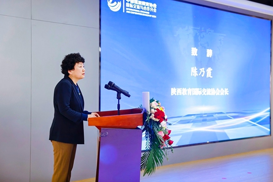 。▓D六)陜西教育國際交流協(xié)會陳乃霞會長致賀辭