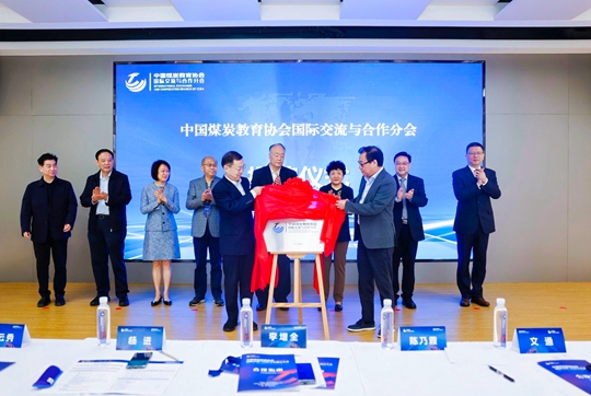中國煤炭教育協(xié)會理事長李增全和西安科技大學(xué)高新學(xué)院董事長孫龍杰在陳乃霞、楊進(jìn)、文通、王慧凌、袁國華、賽云秀、劉予東、鄭學(xué)平等嘉賓的共同見證下為中國煤炭教育協(xié)會國際交流與合作分會揭牌。