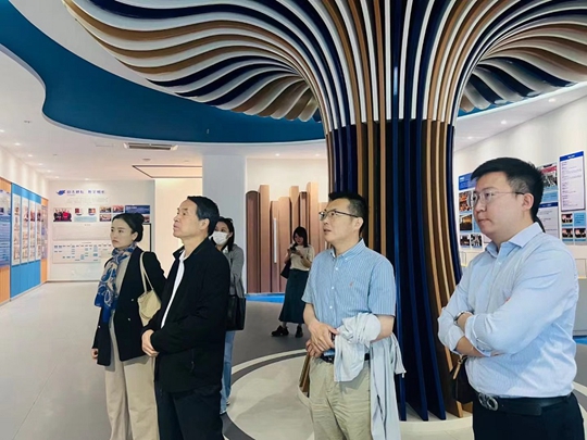 在山東工商學院國際商學院黨委書記肖燁、院長陳彥亮的陪同下,陜西科大高新國際文化科技集團副總裁王國良一行參觀了山東工商學院校史館,詳細了解了山東工商學院的辦學歷史和教育教學理念。
