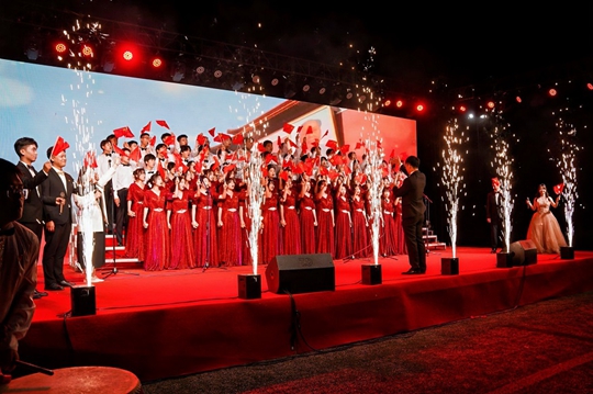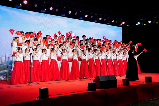本次大合唱比賽以學(xué)院為單位組隊(duì),共計(jì)五支隊(duì)伍參賽,各參賽隊(duì)伍根據(jù)比賽曲目的特點(diǎn)和類型穿插舞蹈、民樂演奏、話劇等多種表現(xiàn)形式。歷時(shí)一個(gè)多月的排練和籌備,《祖國(guó)不會(huì)忘記》《走向復(fù)興》《黃河大合唱》《不忘初心》《國(guó)際歌》《天耀中華》《歌唱祖國(guó)》......一首首膾炙人口的紅色贊歌響徹北區(qū)操場(chǎng),時(shí)而激昂,時(shí)而溫情,時(shí)而奮進(jìn),時(shí)而舒緩。他們以熾熱的愛國(guó)情懷奏響青春華章,展現(xiàn)出高新青年激情四溢的青春風(fēng)采!