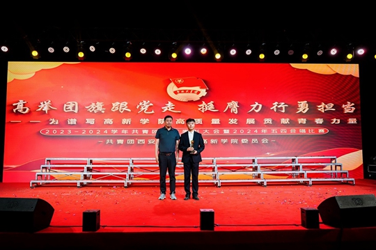學(xué)院紀(jì)委書記、副院長(zhǎng)潘昊宣讀《關(guān)于西安科技大學(xué)高新學(xué)院“學(xué)習(xí)二十大、永遠(yuǎn)跟黨走、奮進(jìn)新征程”2023-2024學(xué)年“五·四”評(píng)優(yōu)表彰的決定》。授予經(jīng)濟(jì)與管理學(xué)院分團(tuán)委、新傳媒與藝術(shù)學(xué)院分團(tuán)委“五四紅旗團(tuán)委”榮譽(yù)稱號(hào);授予城市建設(shè)學(xué)院分團(tuán)委“共青團(tuán)工作進(jìn)步單位”榮譽(yù)稱號(hào);授予財(cái)務(wù)管理2102團(tuán)支部等18個(gè)團(tuán)支部“五四紅旗團(tuán)支部”榮譽(yù)稱號(hào);授予劉雨豪、席洲“支持共青團(tuán)工作好院長(zhǎng)”榮譽(yù)稱號(hào);授予楊妮等7人“優(yōu)秀共青團(tuán)工作者”榮譽(yù)稱號(hào);授予鄧夏等7位輔導(dǎo)員“青年大學(xué)習(xí)最美領(lǐng)學(xué)人”榮譽(yù)稱號(hào);授予樊永霞等7位輔導(dǎo)員“智慧團(tuán)建網(wǎng)上主題團(tuán)課先進(jìn)個(gè)人”榮譽(yù)稱號(hào);授予安月蘭等12位輔導(dǎo)員“第二課堂工作優(yōu)秀輔導(dǎo)員”榮譽(yù)稱號(hào);授予陳登星等185名學(xué)生“優(yōu)秀共青團(tuán)干部”榮譽(yù)稱號(hào);授予程寄楠等441名學(xué)生“優(yōu)秀共青團(tuán)員”榮譽(yù)稱號(hào);授予張欣悅等18名學(xué)生“優(yōu)秀青年志愿者”榮譽(yù)稱號(hào);授予徐香婷等5名學(xué)生“宣傳工作優(yōu)秀個(gè)人”榮譽(yù)稱號(hào);授予陳天宇等8名學(xué)生“優(yōu)秀國(guó)旗衛(wèi)士”榮譽(yù)稱號(hào);授予王辰宇等10名學(xué)生“青馬優(yōu)秀學(xué)員”榮譽(yù)稱號(hào)。出席領(lǐng)導(dǎo)及嘉賓分別為獲獎(jiǎng)集體及個(gè)人代表頒發(fā)榮譽(yù)。
