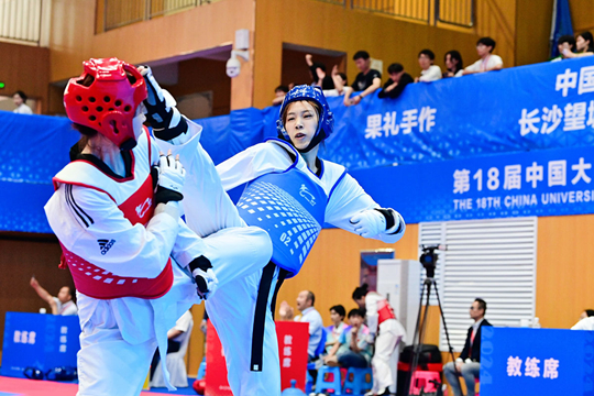 “拳”力出擊,劍指全國三連冠!5月19日至25日,第18屆中國大學(xué)生跆拳道錦標(biāo)賽(南方賽區(qū))在湖南長沙明德望城學(xué)校體育館舉行。本次跆拳道盛會吸引了來自北京大學(xué)、中國地質(zhì)大學(xué)、湖南大學(xué)、長沙理工大學(xué)等全國220所高校的近2000名跆拳道運(yùn)動員、教練員參賽,比賽由中國學(xué)生體育聯(lián)合會主辦。