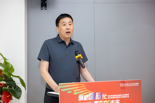 大會(huì)伊始,西安科技大學(xué)高新學(xué)院黨委副書記、副院長(zhǎng)董世平發(fā)表了熱情洋溢的致辭,他對(duì)過(guò)去一年招生及宣傳工作取得的顯著成績(jī)表示高度贊揚(yáng),并對(duì)全體招生及宣傳工作人員表示衷心的感謝。回顧過(guò)去一年,學(xué)院的招生及宣傳工作可謂是在挑戰(zhàn)與機(jī)遇中砥礪前行。每一位招生及宣傳工作人員都深知肩上的重任,他們不僅將學(xué)院的發(fā)展視為己任,更是以勤勉敬業(yè)的精神,不斷開拓創(chuàng)新,致力于提升招生及宣傳工作的質(zhì)量與效率。在這一過(guò)程中,招生及宣傳團(tuán)隊(duì)與學(xué)院科研教學(xué)、學(xué)生管理、后勤保障等相關(guān)部門緊密配合,形成了強(qiáng)大的工作合力。他們共同為培養(yǎng)具備創(chuàng)新精神和實(shí)踐能力的高素質(zhì)應(yīng)用型人才而不懈努力,為學(xué)院輸送了一批又一批的優(yōu)秀生源。