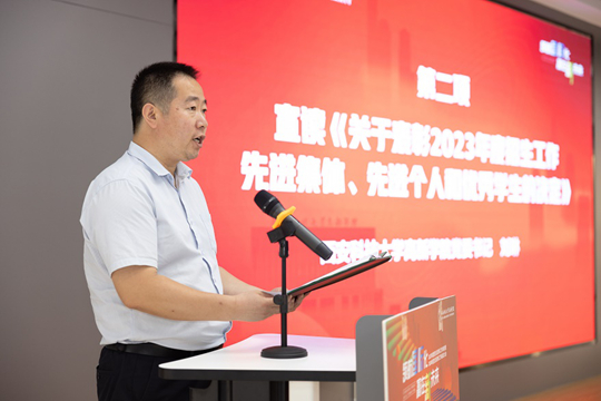 西安科技大學(xué)高新學(xué)院黨委書記劉琳宣讀《關(guān)于表彰2023年度招生工作先進(jìn)集體、先進(jìn)個(gè)人的決定》。對(duì)在2023年學(xué)院招生工作中表現(xiàn)突出的12支優(yōu)秀招生團(tuán)隊(duì)和34名優(yōu)秀個(gè)人,予以表彰獎(jiǎng)勵(lì)。