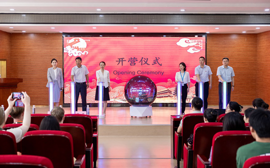 張亮副處長、劉琳書記、汪仁院長、潘昊副院長、張晨副院長、蘇茹教授共同啟動開營裝置,正式宣布:2024年“漢語橋”線下團組英國肯特大學(xué)夏令營“享趣長安”開營!