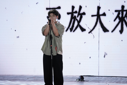 對(duì)選手林鉑浚來說,這是一次無憾的演出。在第一輪公演中,他以疊加擴(kuò)音器的獨(dú)特發(fā)聲方式,為《浮夸》的演繹添上了點(diǎn)睛之筆,調(diào)動(dòng)了現(xiàn)場(chǎng)的氛圍。第二輪幫幫唱環(huán)節(jié),他與搭檔以一曲《遺憾》完美落幕。他說:“能夠在這樣的舞臺(tái)上,與志同道合的伙伴共同演繹這樣一首歌曲,我已經(jīng)沒有遺憾了!