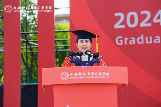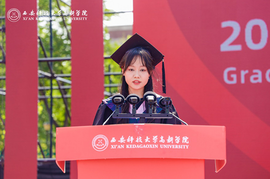 國際教育與人文學(xué)院學(xué)前教育2006班楊馨瑜同學(xué)代表畢業(yè)生致辭感謝母校和恩師的培育,她表示大學(xué)是知識(shí)、友情和成長(zhǎng)的搖籃,在這里與老師和同學(xué)們共度了無數(shù)難忘時(shí)刻,她鼓勵(lì)同學(xué)們繼續(xù)保持對(duì)知識(shí)的熱愛和追求,不斷進(jìn)步,創(chuàng)造美好,無論走到哪里都牢記自己是科大高新的一分子,祝愿2024屆全體畢業(yè)生前程似錦,老師們身體健康,母校蓬勃發(fā)展。