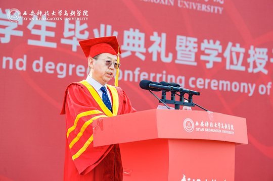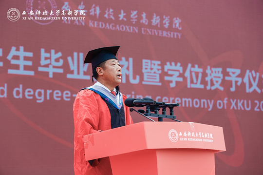 西安科技大學(xué)高新學(xué)院董事長(zhǎng)孫龍杰博士以“前路漫漫,未來可期”為題為同學(xué)們送上飽含深情又富含哲理的的離別贈(zèng)言,首先希望同學(xué)們要具有國際化的視野。當(dāng)今世界日益全球化,國際合作與創(chuàng)新已成為推動(dòng)社會(huì)進(jìn)步的重要?jiǎng)恿。作為西安科技大學(xué)高新學(xué)院的畢業(yè)生,應(yīng)該秉持開放的心態(tài),積極參與國際交流與合作,為構(gòu)建人類命運(yùn)共同體貢獻(xiàn)力量。其次,同學(xué)們要具有創(chuàng)新精神。創(chuàng)新是時(shí)代的要求,也是國家發(fā)展的核心驅(qū)動(dòng)力,競(jìng)爭(zhēng)優(yōu)勢(shì)的秘密是創(chuàng)新。人工智能的快速發(fā)展,ChatGPT的推出等,促使我們重新思考個(gè)人的價(jià)值,不斷創(chuàng)新創(chuàng)造。最后,我希望同學(xué)們永葆赤子之心。無論未來你們的人生之路將如何展開,都請(qǐng)銘記那份最初的熱情與理想。這份熱情與理想,如同明亮的燈塔,在茫茫人海中為你們指明方向,讓你們?cè)谌松穆猛局惺冀K堅(jiān)定前行。親愛的同學(xué)們,縱使萬般不舍,也要揮手告別。在這個(gè)重要的時(shí)刻,我想對(duì)你們說:未來的路還很長(zhǎng),但請(qǐng)你們記住,無論走到哪里,母校永遠(yuǎn)是你們的精神家園和堅(jiān)強(qiáng)后盾。無論你們身在何方,母校都會(huì)關(guān)注著你們的成長(zhǎng)和發(fā)展,為你們提供支持和幫助。我熱切期盼你們常回家看看,與我們共同見證母校的繁榮與發(fā)展。最后,祝愿大家前程似錦,未來可期!