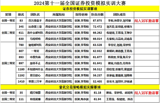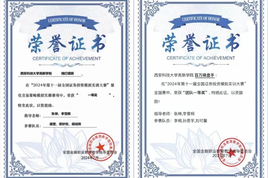 | 西安科技大學高新學院學子在2024年第十一屆全國證券投資模擬實訓大賽中榮獲佳績 |