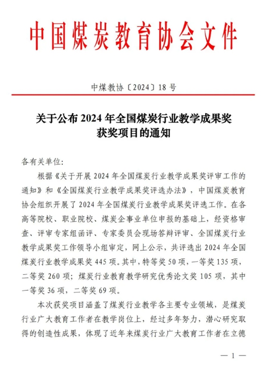 | 西安科技大學(xué)高新學(xué)院教師喜獲2024年全國煤炭行業(yè)教學(xué)成果獎三項! |