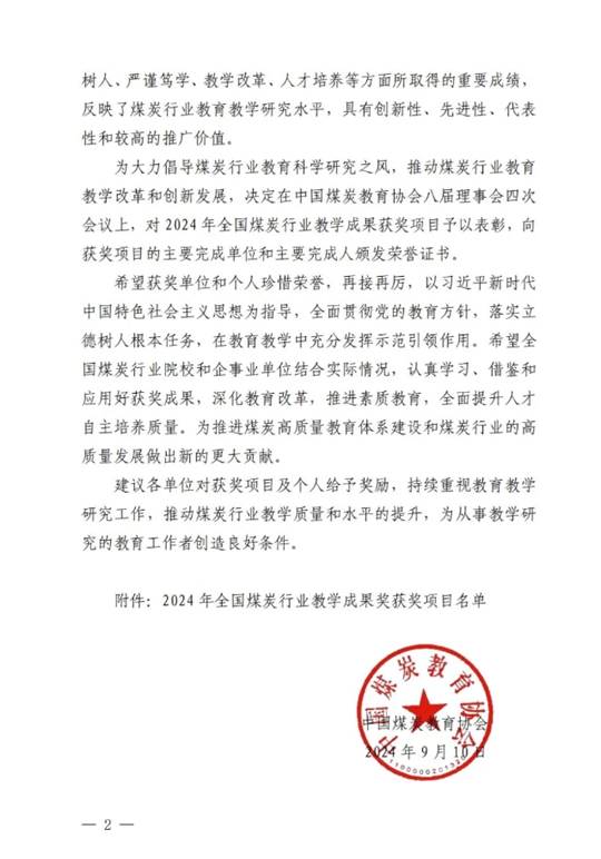 9月10日,中國煤炭教育協(xié)會下發(fā)了《關(guān)于公布2024年全國煤炭行業(yè)教學(xué)成果獎獲獎項目的通知》(中煤教協(xié)【2024】18號)文件,西安科技大學(xué)高新學(xué)院教師李小麗、吳航行、梁惠珍三位老師主持的教學(xué)成果披荊斬棘,榮獲2024年全國煤炭行業(yè)教學(xué)成果二等獎。這不僅是學(xué)院榮耀的加冕,更是對西安科技大學(xué)高新學(xué)院教育創(chuàng)新、行業(yè)貢獻的深刻認可。