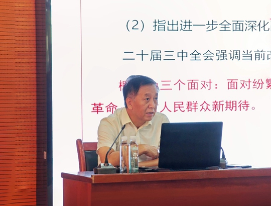 報告會上,高振崗教授圍繞深刻理解全會的重要意義,從《中共中央關于進一步全面深化改革、推進中國式現(xiàn)代化的決定》出發(fā),大致梳理一下進一步全面深化改革的重要性、指導思想、總目標、重大原則、改革舉措、根本保證等核心內(nèi)容。并從貫徹落實學校黨委的部署安排的角度,要求學院加強學習宣傳,深化研究闡述,制定務實舉措確保實施。最后,結合學院工作實際情況,按照學院工作高質(zhì)量發(fā)展要求對全會精神進行系統(tǒng)解讀和深入闡釋,強調(diào)以更高標準、更大力度謀劃推進高新學院的改革。