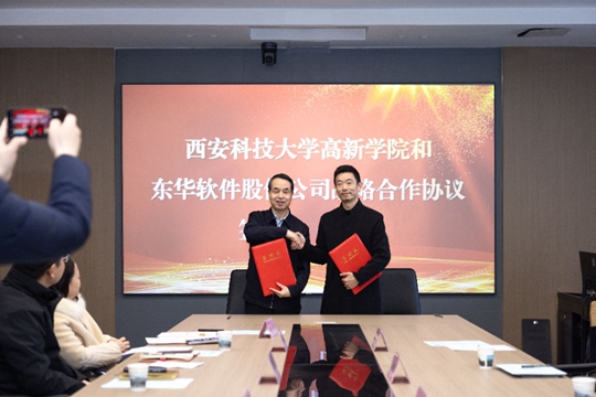 2025年1月20日上午,西安科技大學高新學院與東華軟件股份公司簽署戰(zhàn)略合作協(xié)議,雙方計劃將在人才培養(yǎng)、師資共建、教育數(shù)字化等多領域展開深度合作,充分發(fā)揮各自優(yōu)勢,實現(xiàn)資源共享、優(yōu)勢互補,共同打造教育數(shù)字化轉型的新標桿,為培養(yǎng)適應新時代發(fā)展需求的高素質人才貢獻力量。