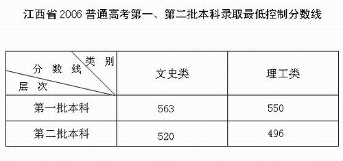 江西省2006高考第一、第二批本科錄取分?jǐn)?shù)線