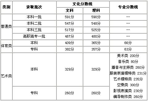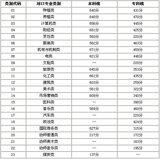 2006年河南省普通高校對口招生錄取控制分數(shù)線