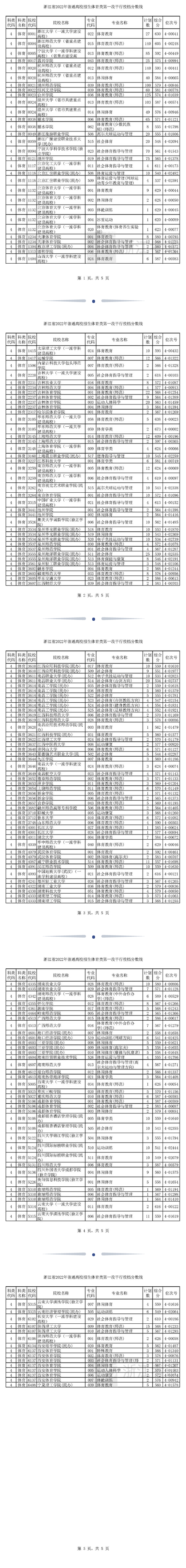 浙江省2022年普通高校招生體育類第一段平行投檔分數(shù)線