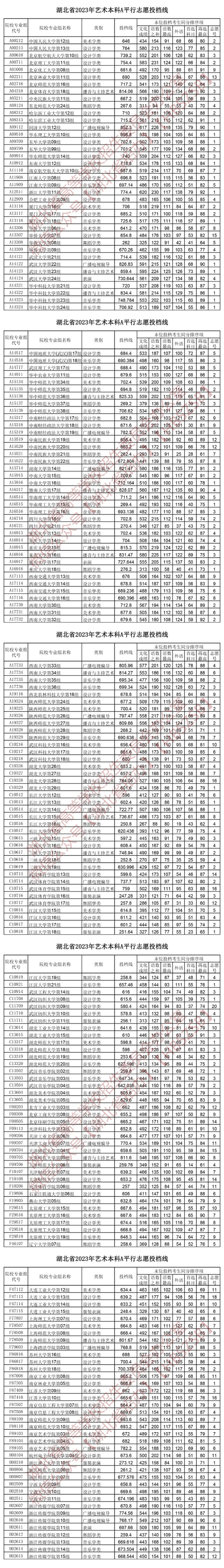 湖北省2023年藝術(shù)本科A平行志愿投檔線