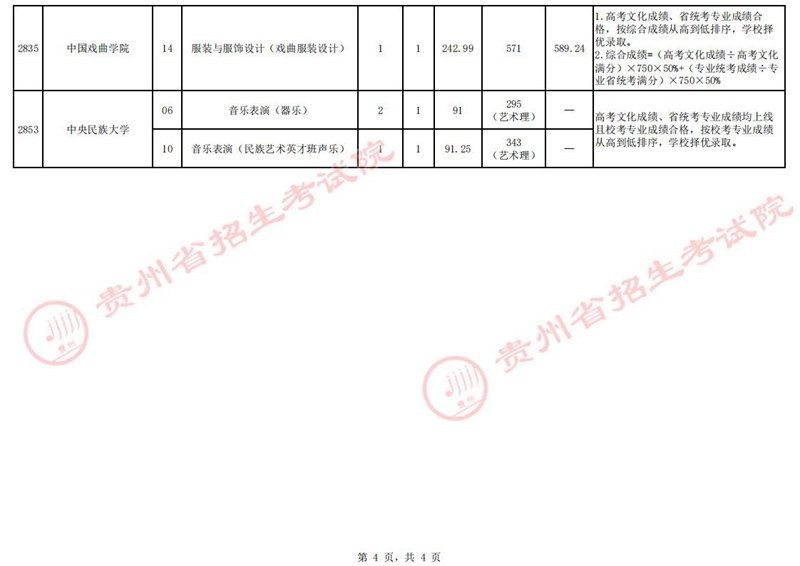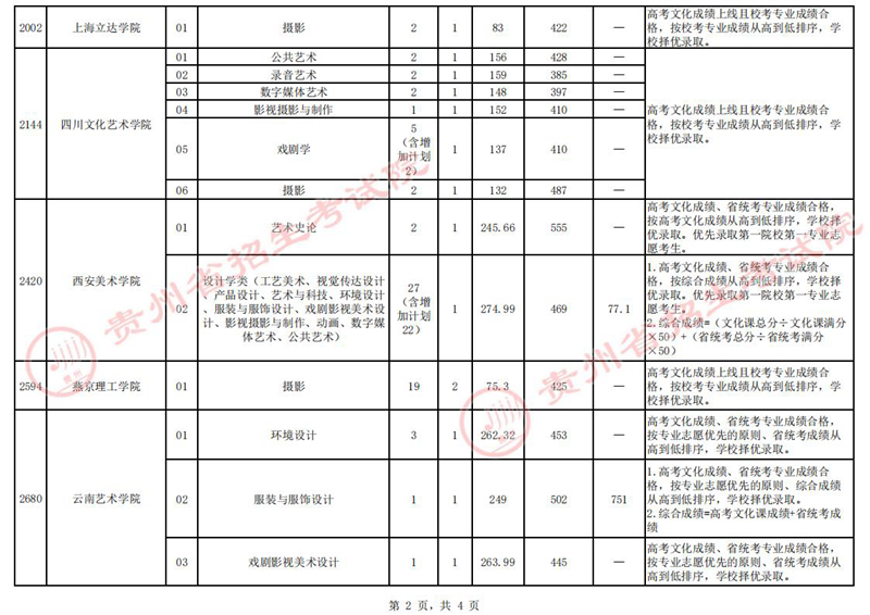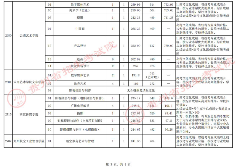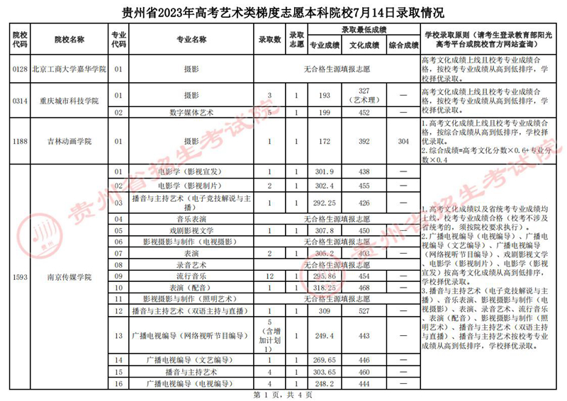 貴州省2023年高考藝術(shù)類梯度志愿本科院校7月14日錄取情況