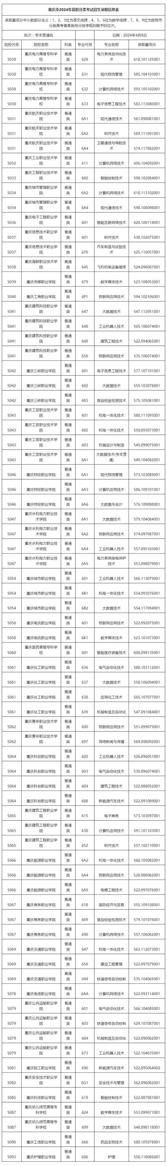 重慶市2024年高職分類考試招生錄取信息表-專本貫通批