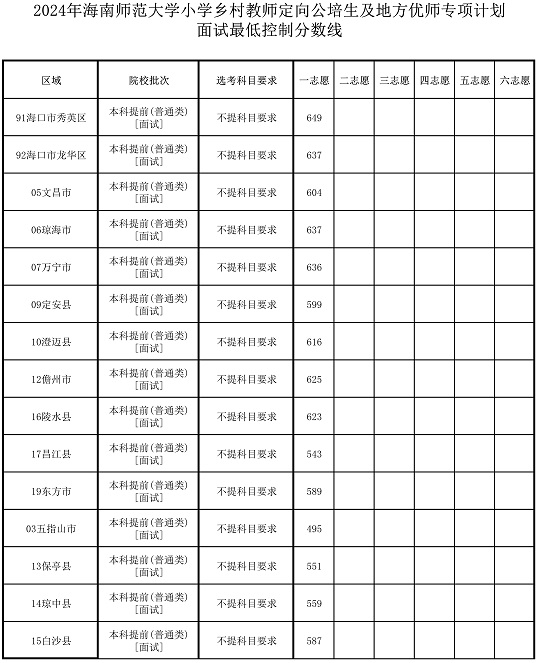 | 2024年海南師范大學(xué)小學(xué)鄉(xiāng)村教師定向公培生及地方優(yōu)師專項(xiàng)計(jì)劃面試最低控制分?jǐn)?shù)線 |