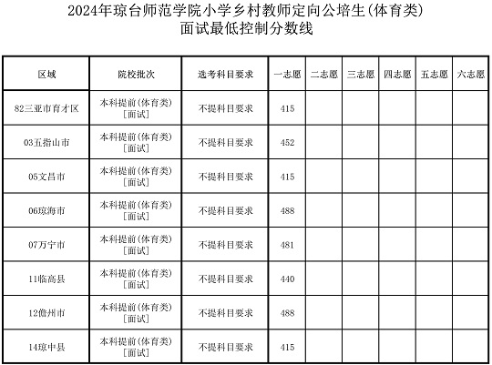 2024年瓊臺(tái)師范學(xué)院小學(xué)鄉(xiāng)村教師定向公培生(體育類) 面試最低控制分?jǐn)?shù)線
