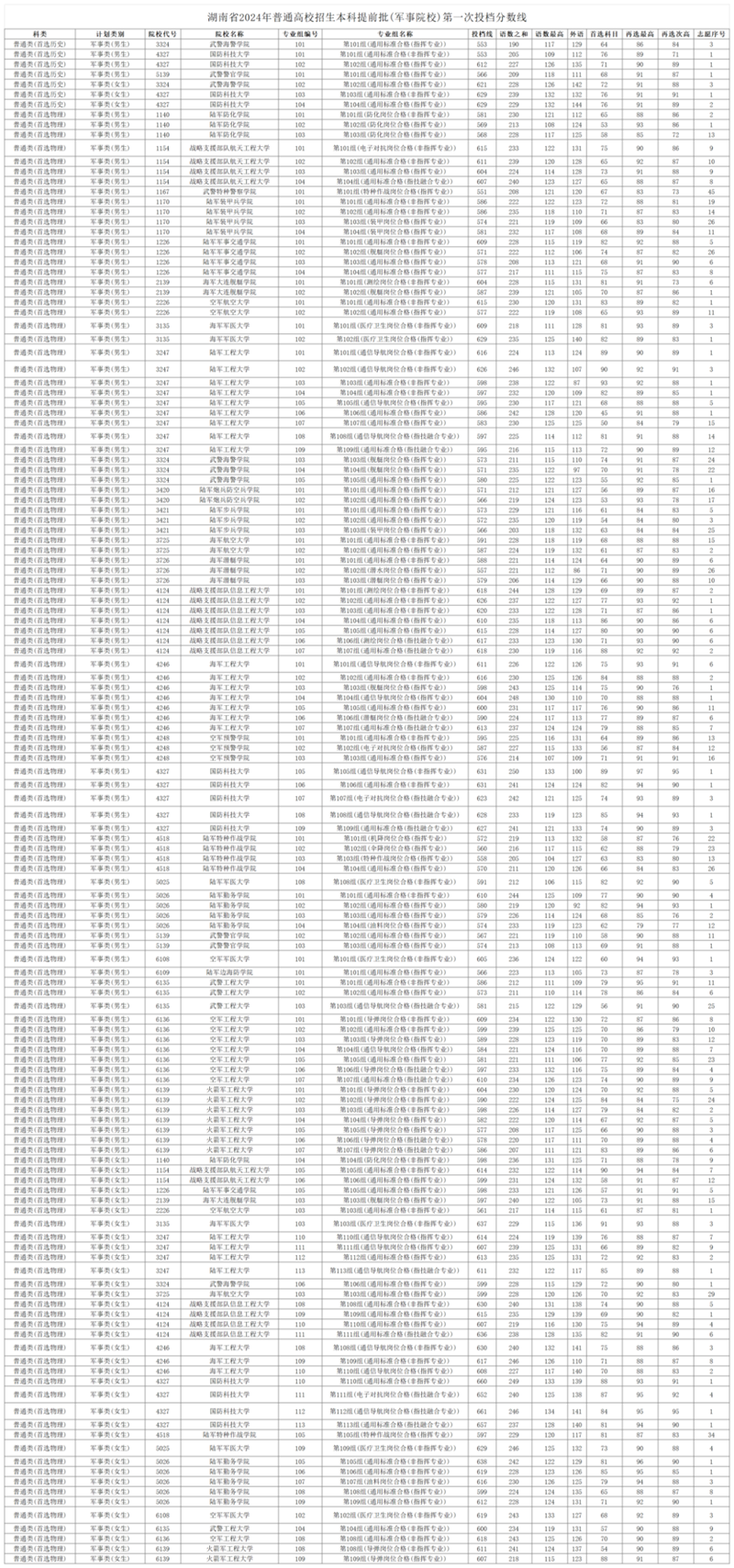 湖南省2024年普通高校招生本科提前批(軍事院校)第一次投檔分?jǐn)?shù)線