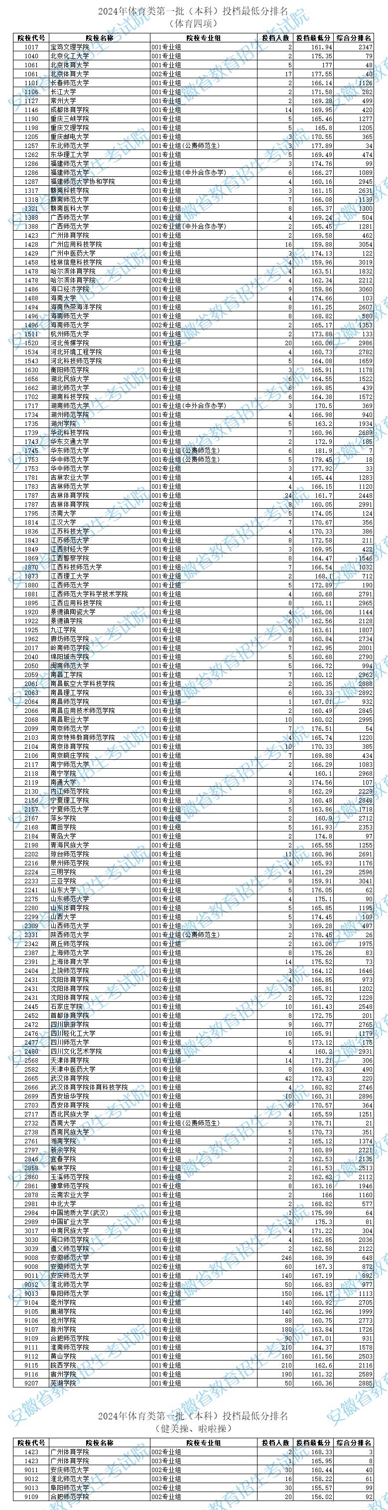 安徽:2024年體育類第一批(本科)投檔最低分排名