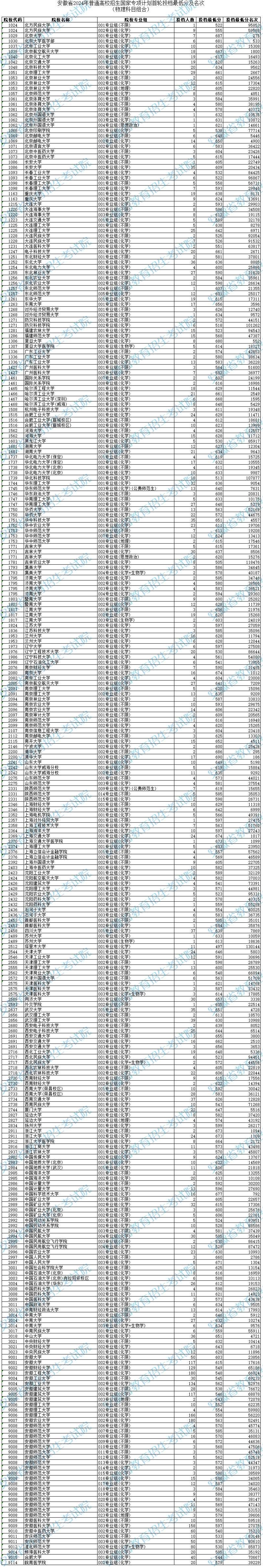 安徽省2024年普通高校招生國家專項計劃首輪投檔最低分及名次(物理科目組合)