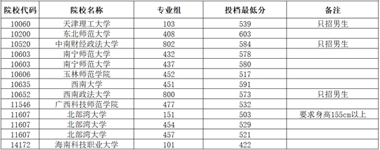 對考生身體條件有要求的,按學校招生要求進行投檔;對性別比例有要求的專業(yè),按學校要求投檔。