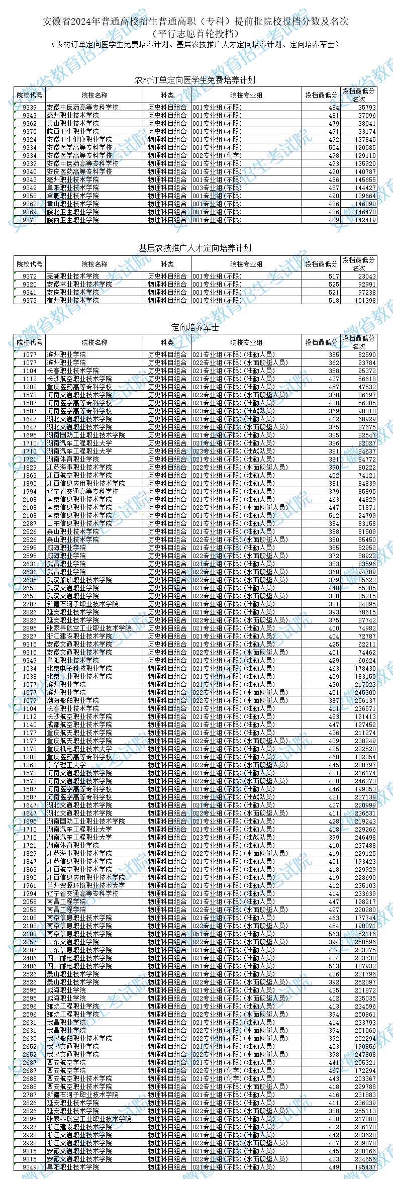 安徽省2024年普通高校招生普通高職(?疲┨崆芭盒M稒n分數(shù)及名次