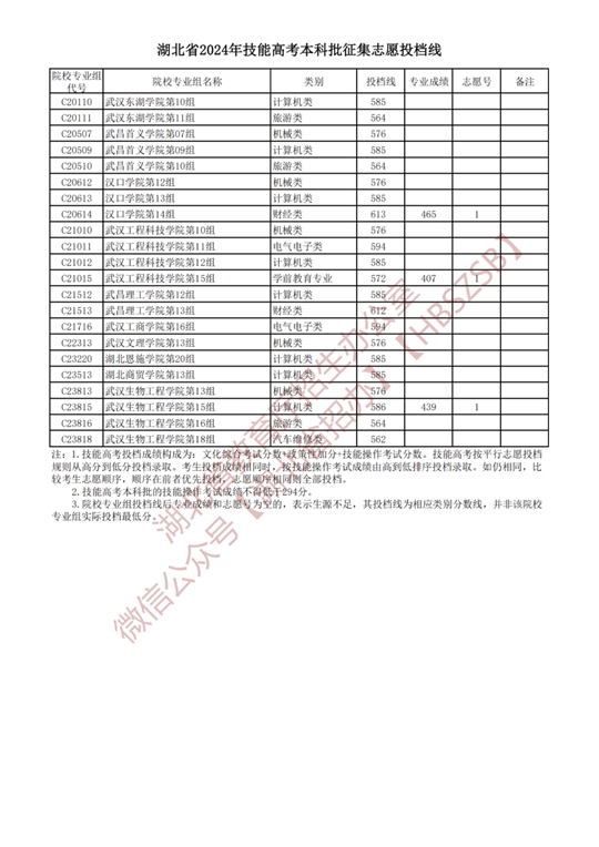 湖北省2024年技能高考本科批征集志愿投檔線