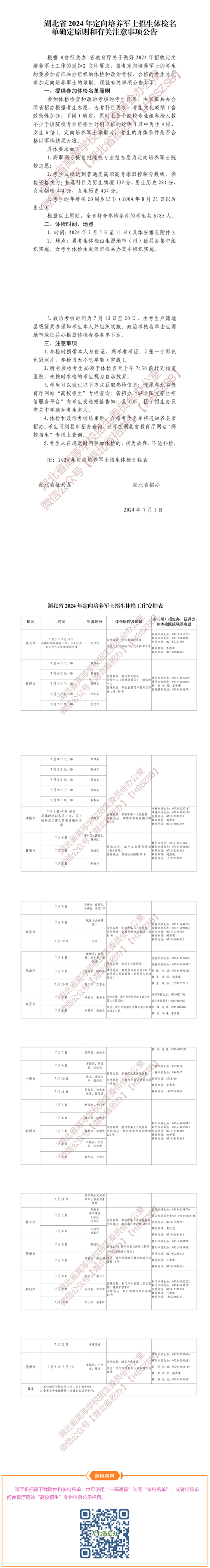 | 湖北省2024年定向培養(yǎng)軍士招生體檢名單確定原則和有關(guān)注意事項(xiàng)公告省2024年定向培養(yǎng)軍士招生體檢名單確定原則和有關(guān)注意事項(xiàng)公告 |