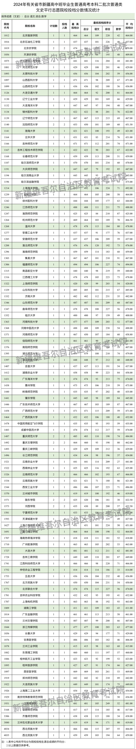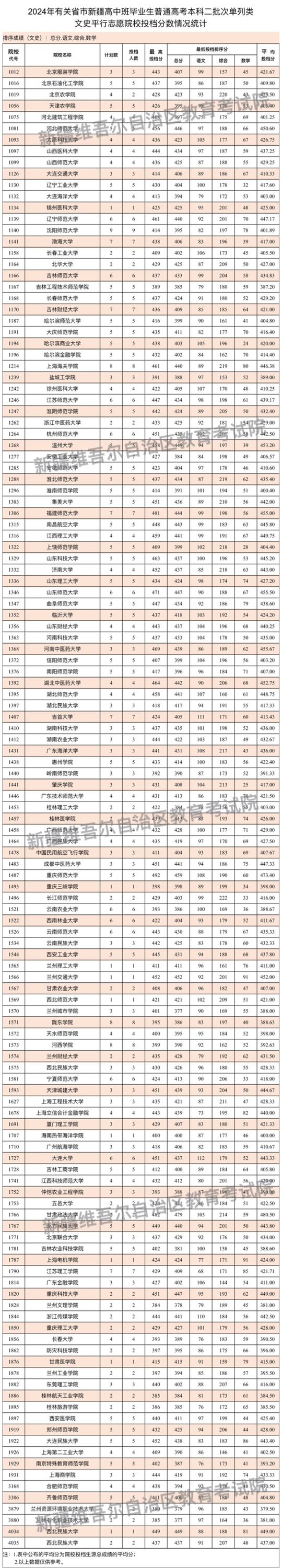 按照錄取工作安排,自治區(qū)2024年普通高校招收有關(guān)省市新疆高中班畢業(yè)生本科二批次8月4日正式投檔錄取,新疆教育考試院根據(jù)投檔原則進(jìn)行了投檔,現(xiàn)將相關(guān)院校投檔情況公布如下。