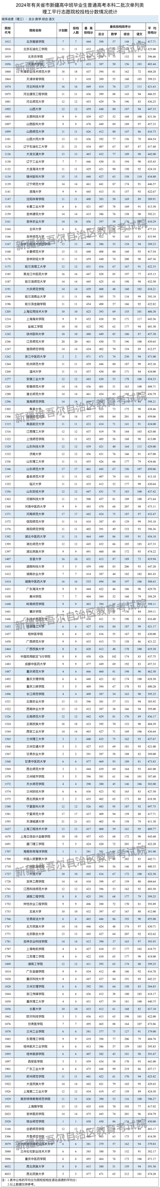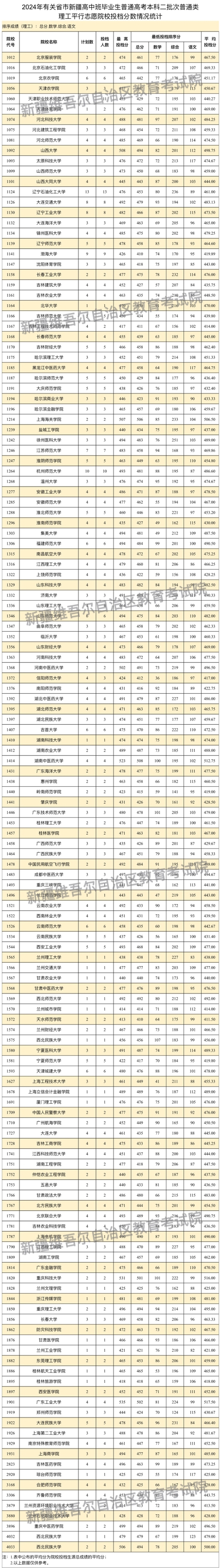 | 新疆維吾爾自治區(qū)2024年普通高校招收有關(guān)省市新疆高中班畢業(yè)生本科二批次投檔情況 |